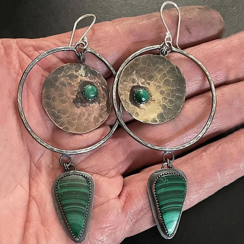 Elegant vintage green stone waterdrop earrings in silver tone. Adds a timeless, sophisticated accent to any outfit.
