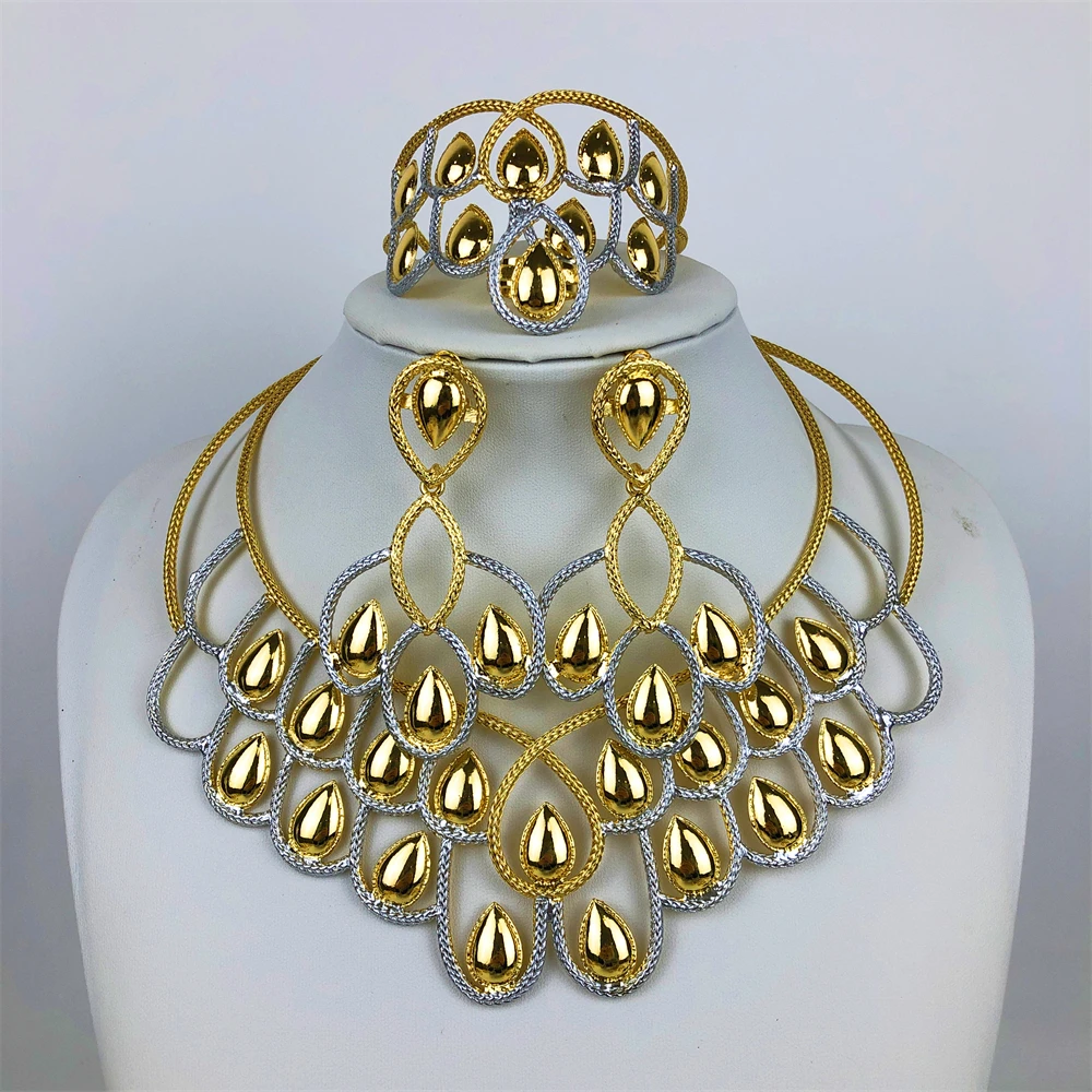 Delicate water drop gold choker jewelry set with matching earrings. Elegant and feminine design ideal for weddings or special events.