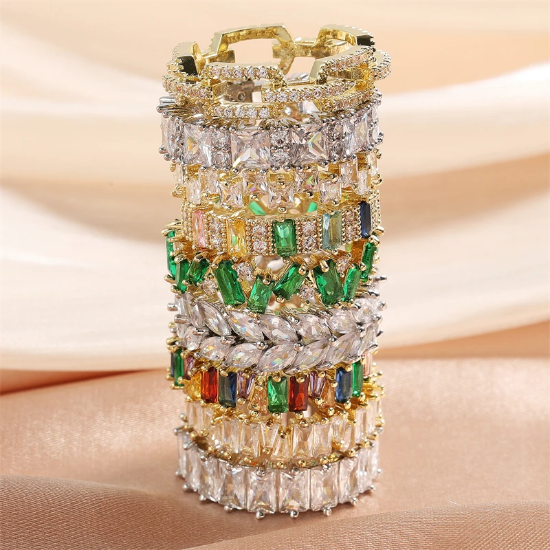 ZAKOL multicolor baguette zircon ring. Stylish, colorful design perfect for parties, gifts, or daily fashion.