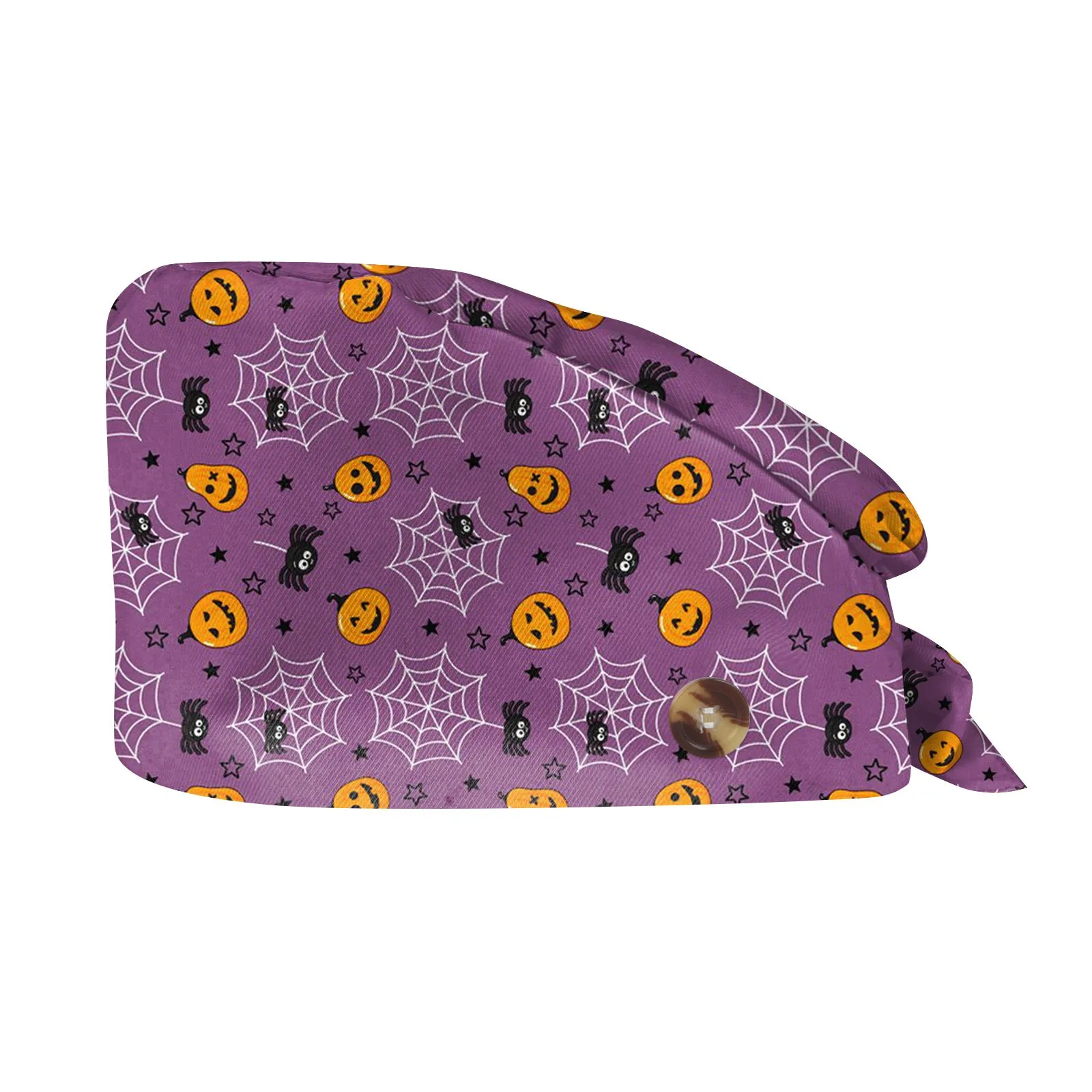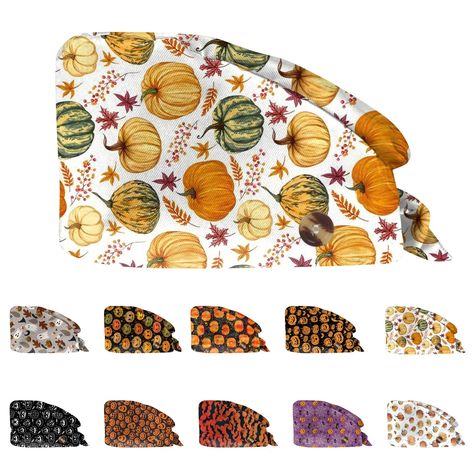 Halloween Pumpkin Bat Print Adjustable Scrub Hat Nurse Cap