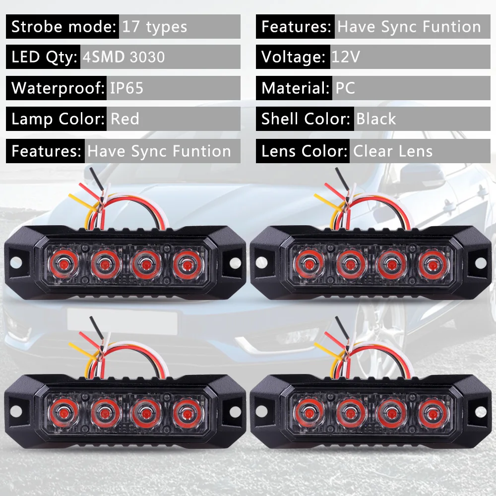 – For This Amber Led Strobe Lights, It Has 17 Flashing Models, Multiple Choices,Which Will Make Your Car More Eye-catching. Low Power Consumption, Quick Instant Start-up Time.