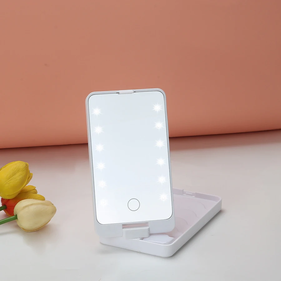 This LED desktop makeup mirror is designed with a steady base, convenient to stand on the desktop.