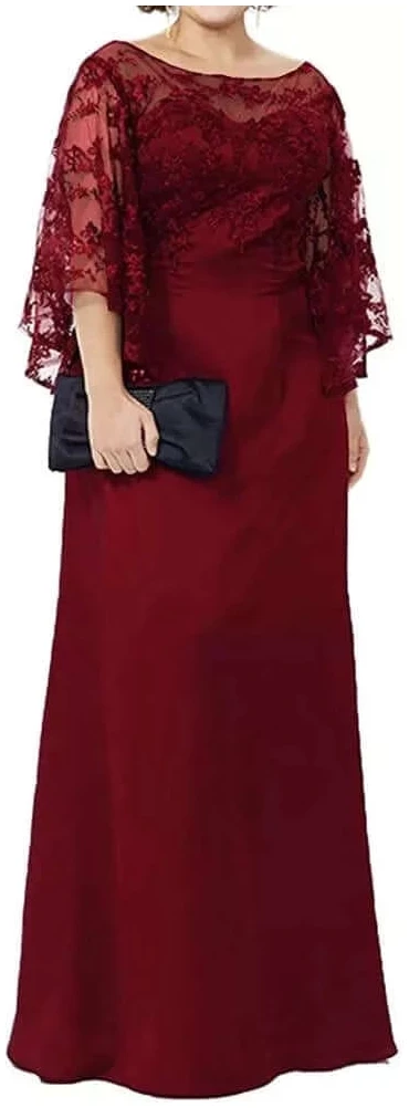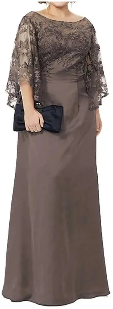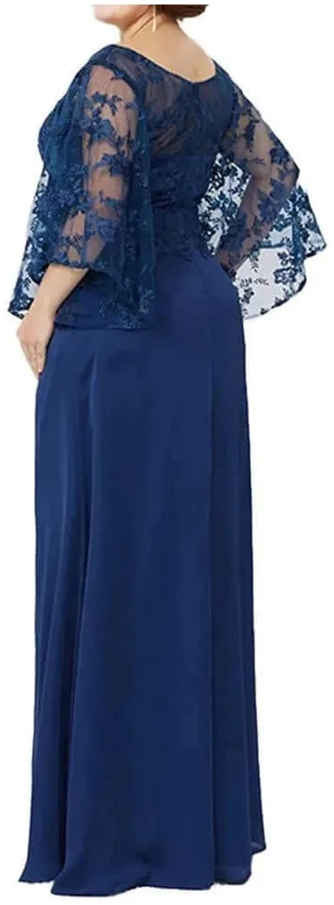 Long Sleeve Lace Top Plus Size Mother of the Bride Dress Floor Length