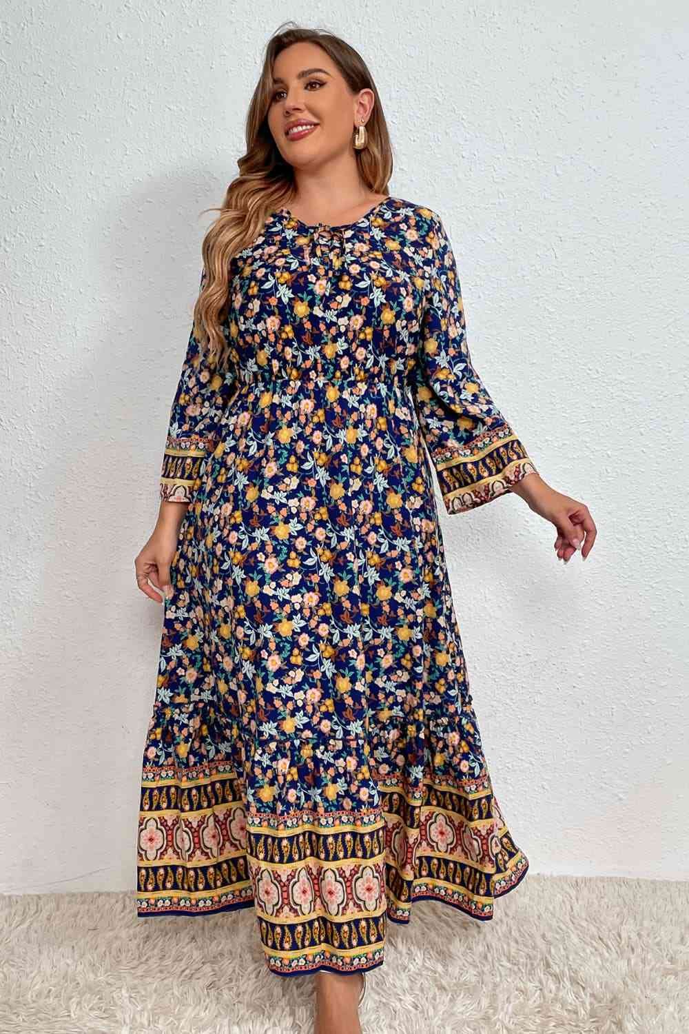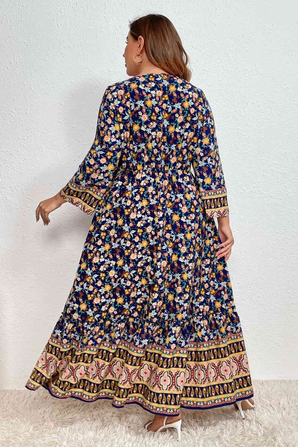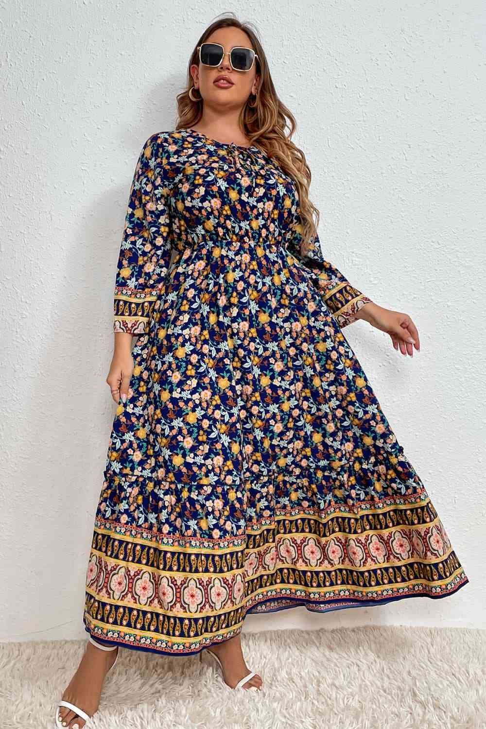 Melo Apparel Plus Size Bohemian Round Neck Maxi Dress