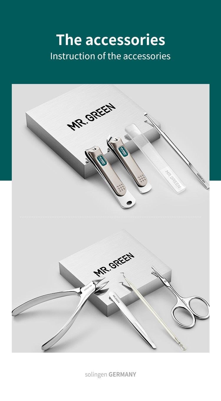 MR.GREEN Professional Manicure Pedicure & Facial Grooming 8pc Medical Grade Travel Kit
