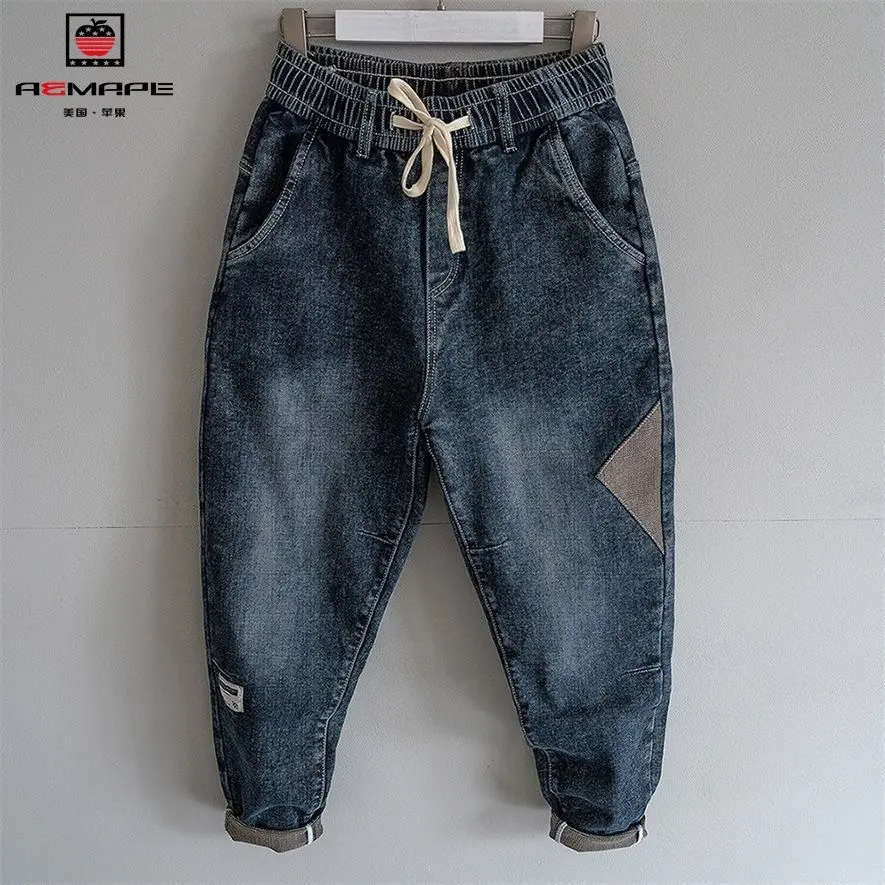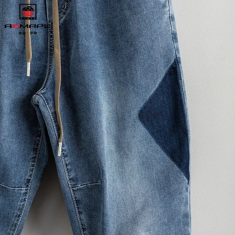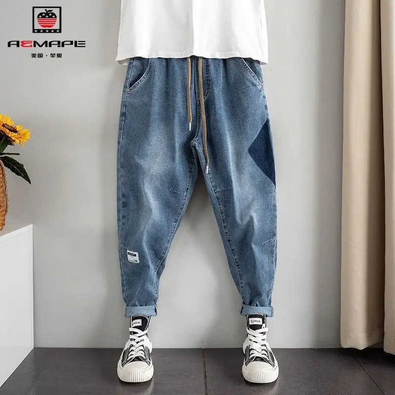 Men’s Spring and Autumn Drawstring Hip Hop Baggy Jeans