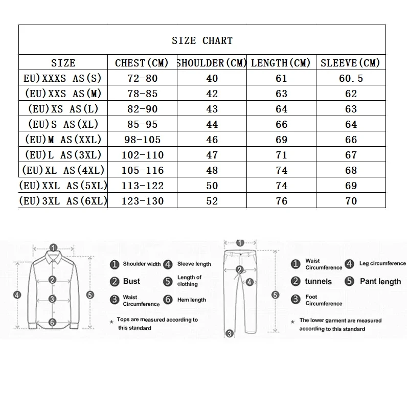 Height: 195-200cm, Weight: 90-100kg,Recommend Size: (EU)2XL