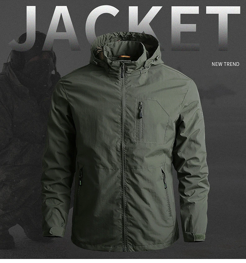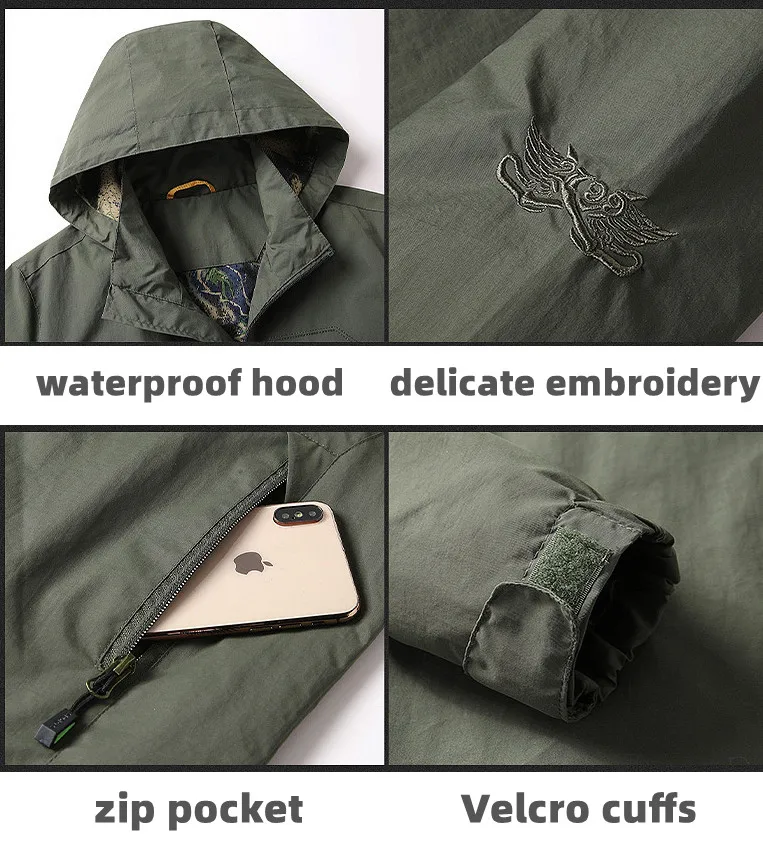 Hot Sale 5XL Mens Outdoor Hiking Jackets Autumn Military Multi-pocket Tactical Safari Fishing Waterproof Hooded Thin Cargo Coat