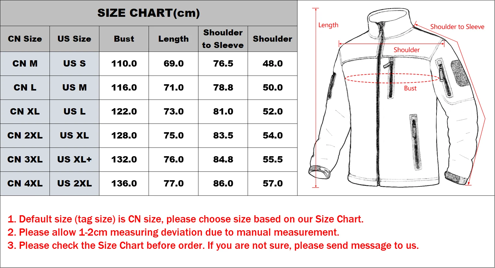 1. Default size (tag size) is CN size, please choose size based on our Size Chart.