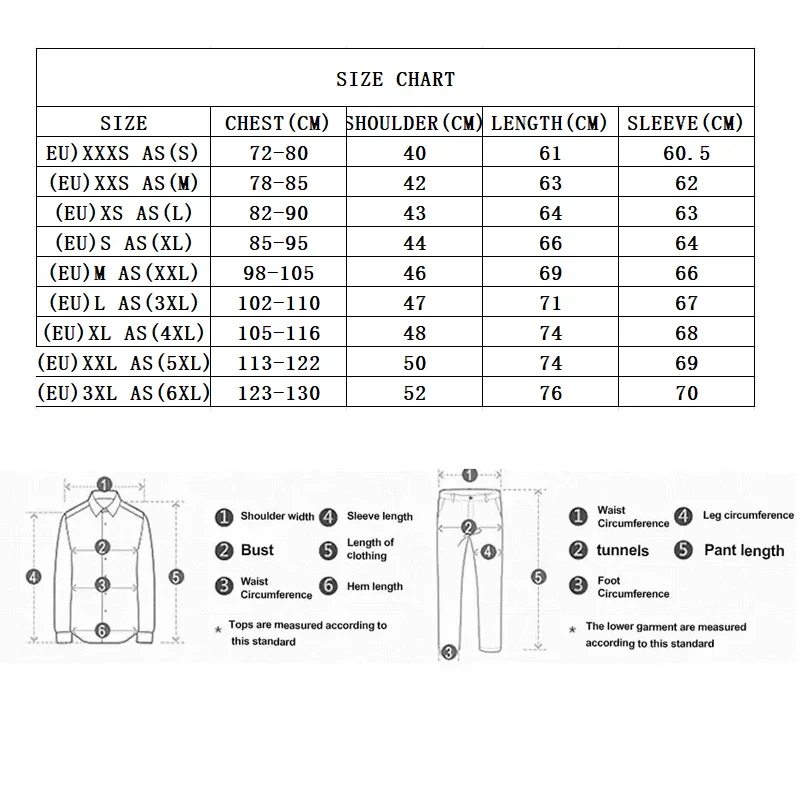 Height: 195-200cm, Weight: 90-100kg,Recommend Size: (EU)XXL AS(5XL)