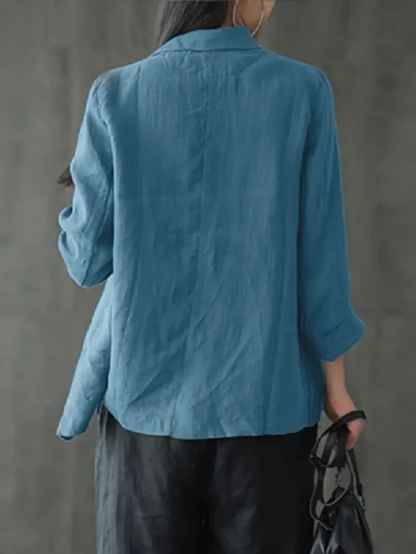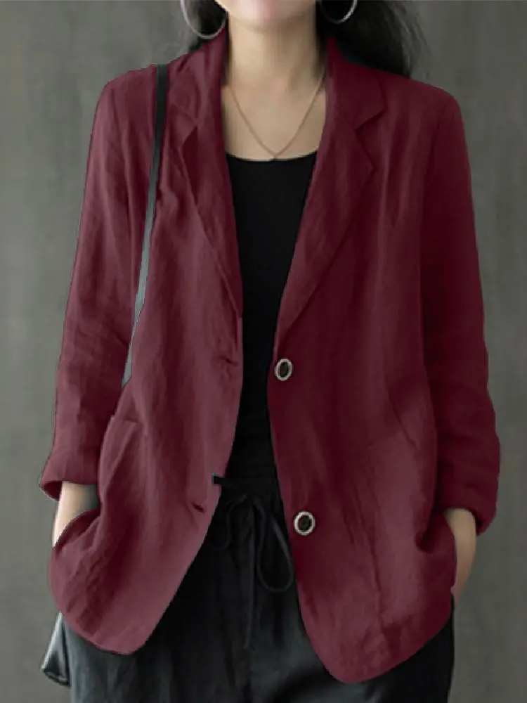 Women’s Lapel Neck Long Sleeve Cotton Casual Thin Blazer