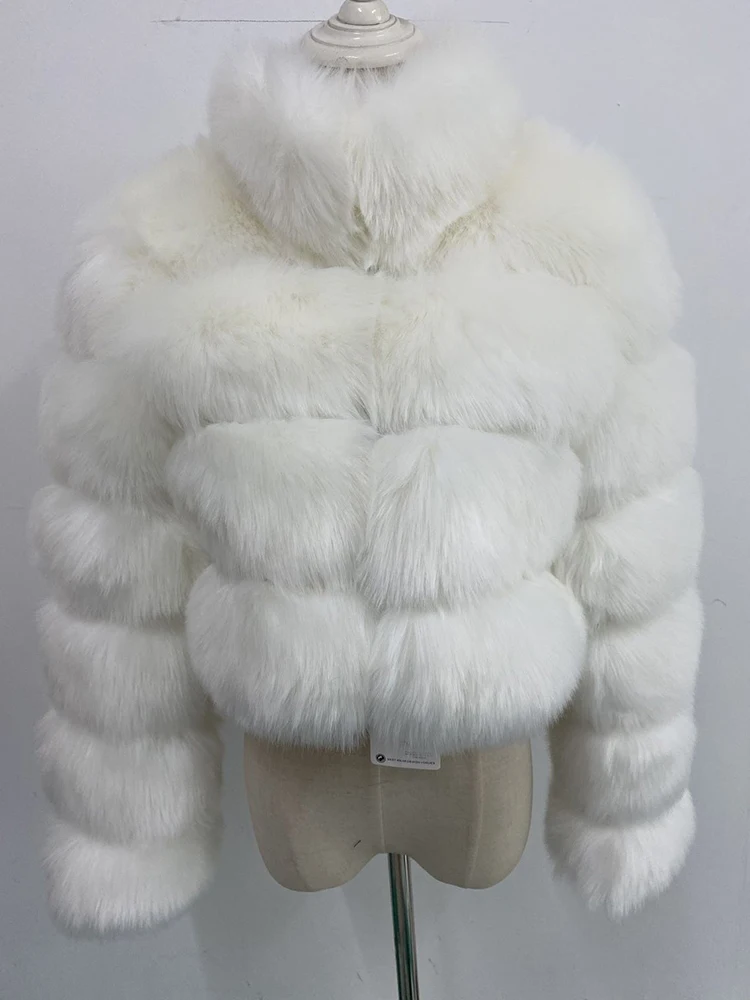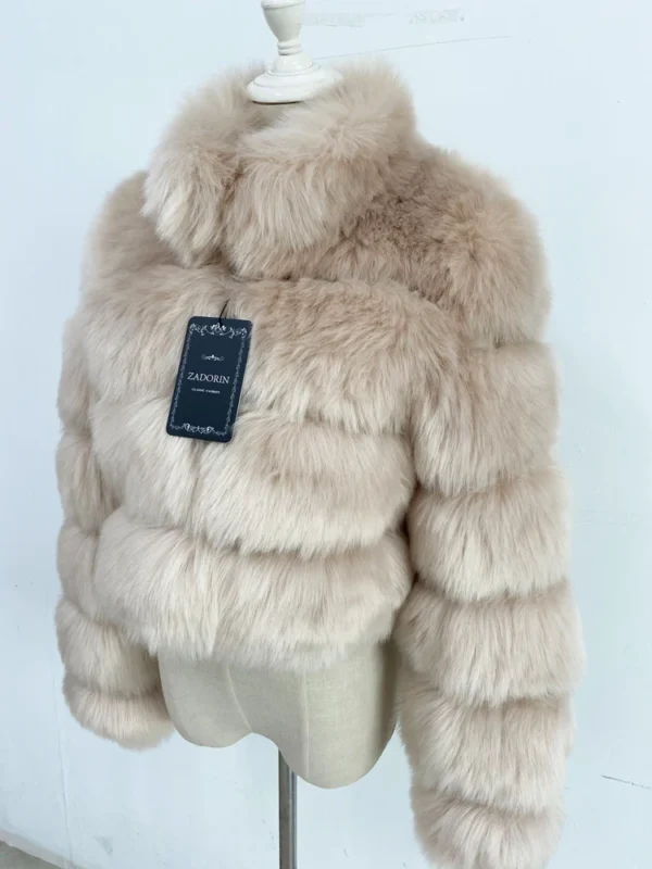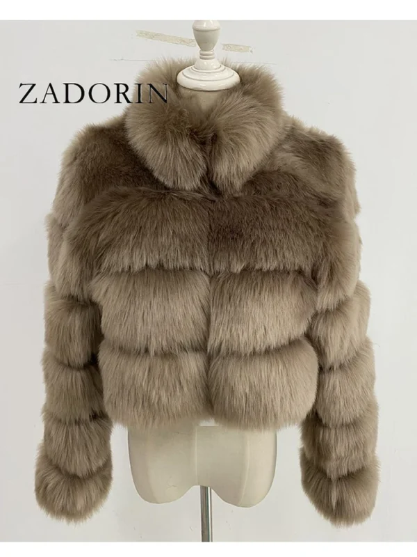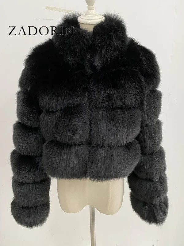 ZADORIN Fashion Short Winter Faux Fox Fur Coat Women Luxury Stand Fur Collar Thick Warm Furry Jacket Faux Fur Top