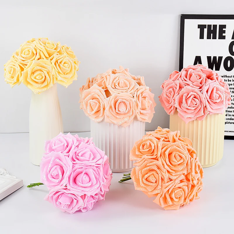 10/20Pcs Glitter Foam Rose, Artificial Wedding Party Bouquet
