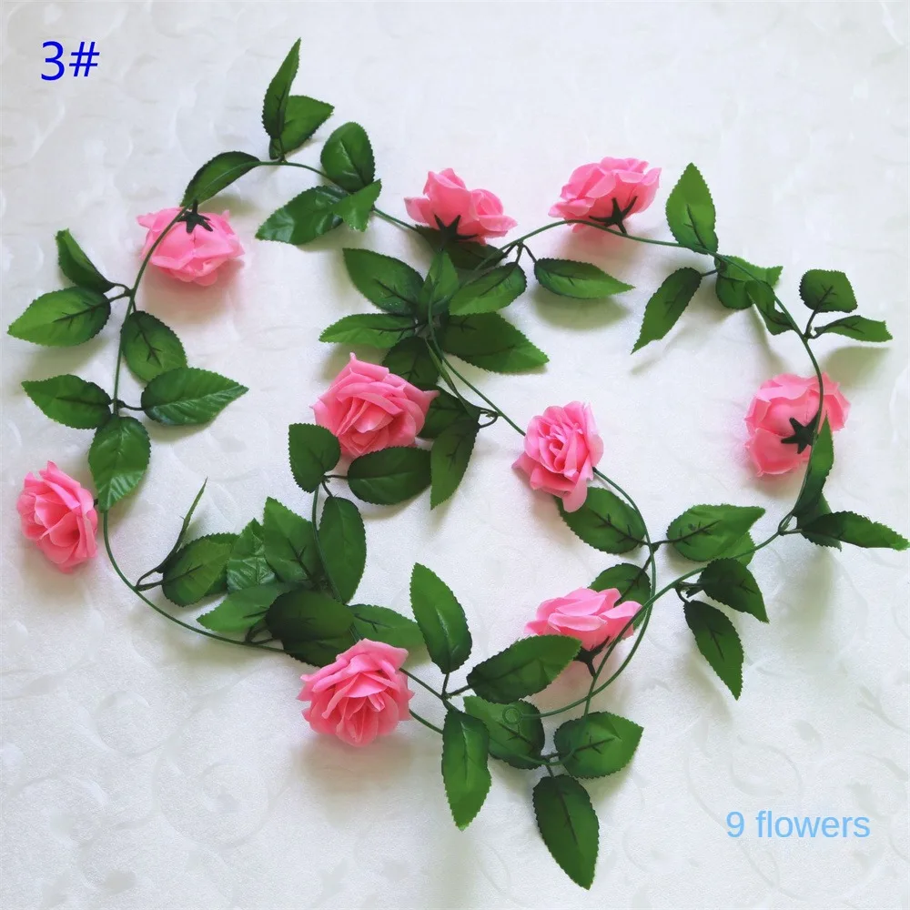 245CM Rose Artificial Flowers Christmas Garland For Wedding Home Room Decoration Garden Arch DIY Fake Plant Vine