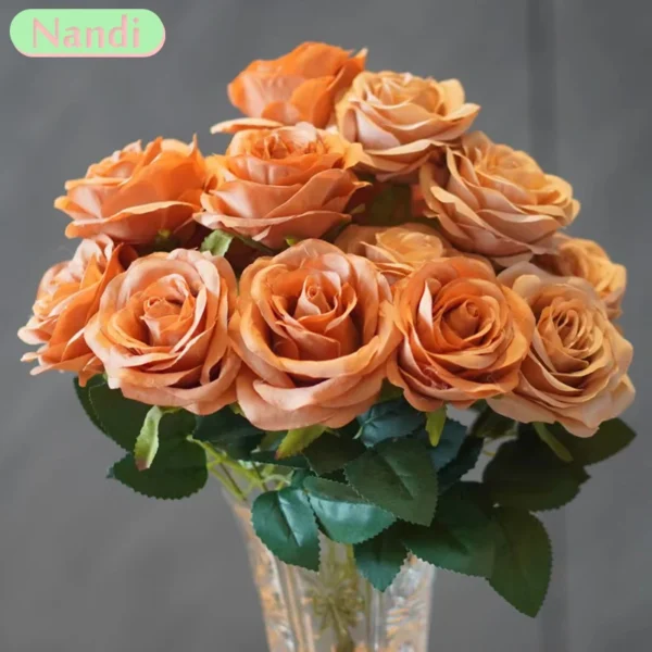 9 Heads Rose Bouquet, Artificial Wedding Flower Decor Gift