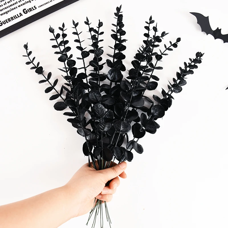 Black Artificial Eucalyptus Branch for Halloween and Home Decor