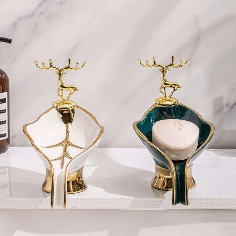 This is not only a luxurious, ceramic soap dish in the shape of a leaf, but also drains the water away from the soap keeping the soap from getting soggy. Also, the soap lasts longer saving money
