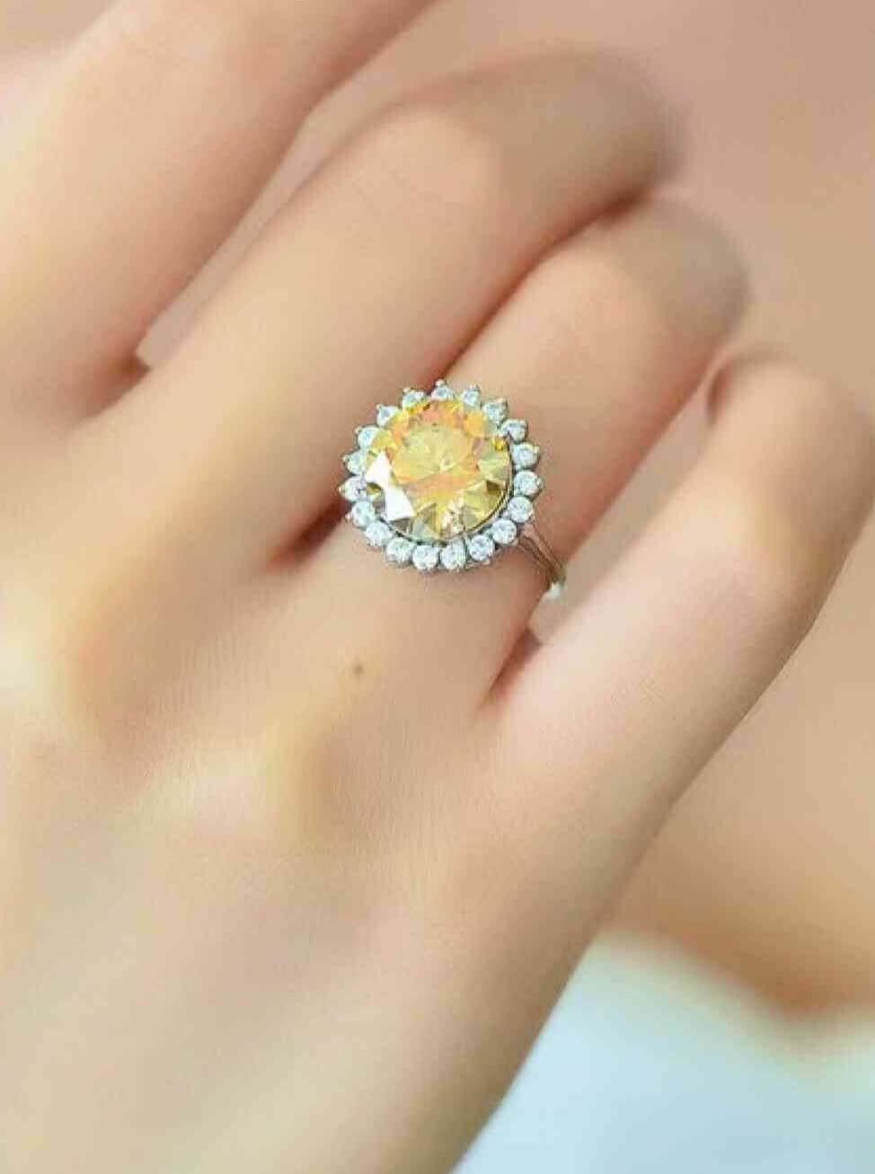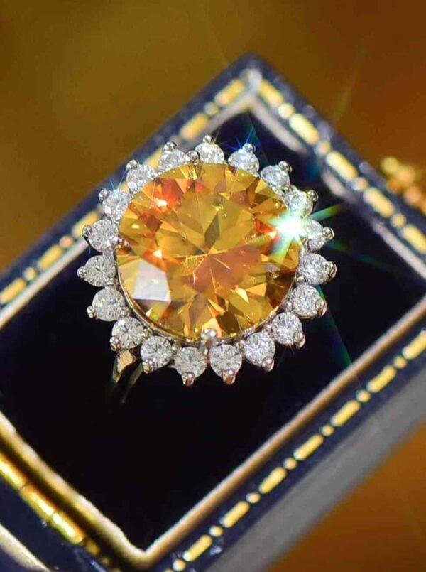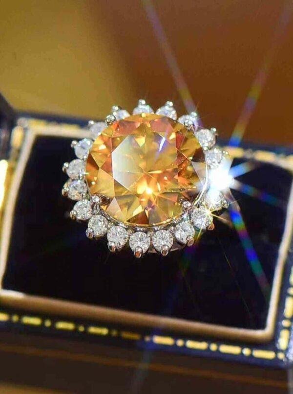925 Sterling Silver 2 Carat Moissanite Sunflower Ring For Gift
